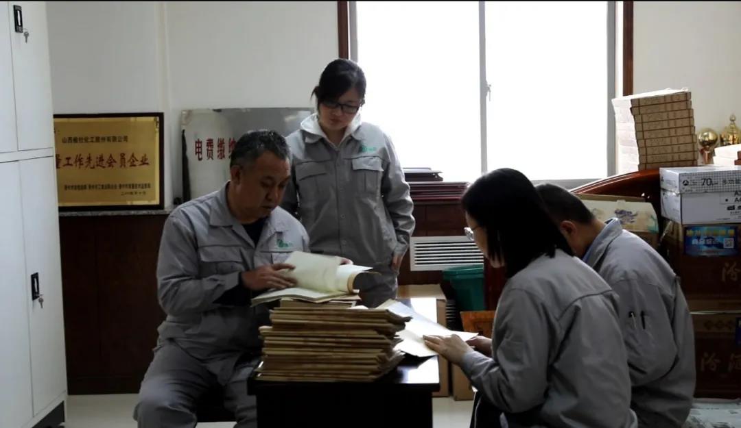 我們一次一次深入檔案室、縣檔案局,翻閱《化工簡報(bào)》、《榆社化工報(bào)》及其他卷軼浩繁的史料,隨著一本本塵封多年的檔案被開啟,一件件沉寂的往事被重新拾起,一個(gè)個(gè)曾經(jīng)奮斗的身影被重新演繹......廠史編纂委員會的同事常常被卷宗上年久積落的灰塵弄得噴嚏連連、甚至皮膚過敏;被檔案里發(fā)黃紙張上模糊不清的字跡弄得眼睛酸澀發(fā)脹;堆積如山的資料,分類標(biāo)記、逐頁翻閱,深怕遺漏,但凡看到國省市縣工業(yè)、化肥文件,榆化、化工字眼,反應(yīng)大背景、相似事件等文件都要從中尋覓有價(jià)值的信息,共計(jì)翻拍298份文件,回到公司還需要熟練運(yùn)用電腦技能,將瑣碎的資料整理成文檔,制作成圖表,編輯整理存檔......
