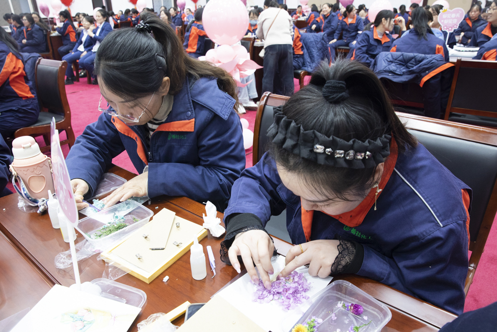 隨后進(jìn)行的手工制作活動(dòng)更是互動(dòng)頻頻,在老師耐心指導(dǎo)下,女職工們圍坐在一起變身 "巧工匠",興致勃勃地體驗(yàn)著各類DIY制作。大家充分發(fā)揮創(chuàng)新思維,互相交流、互相學(xué)習(xí),現(xiàn)場(chǎng)歡聲笑語(yǔ)不斷。在一雙雙巧手的精心雕琢下,一件件精美的作品相繼誕生,每一件作品都承載著女職工們獨(dú)特的創(chuàng)意與對(duì)美的理解。