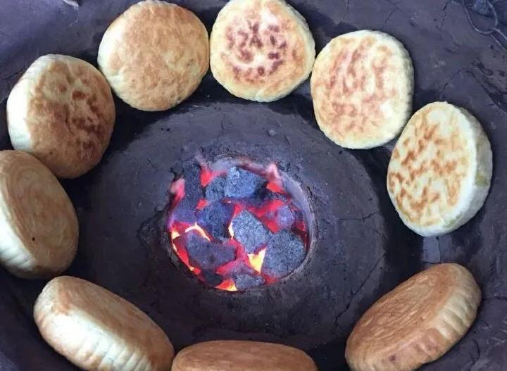 只見一個阿姨把包好餡的胚子放在案板上,另一個阿姨拿起月餅胚子壓在模子里,均勻按實,就在那案板上一磕,“啪”的一聲脆響,一個活脫脫的月餅就掉在案板上了。不一會功夫案板上就整齊地排滿了月餅胚子。剩下的事就是上爐烤了,看火的母親相當(dāng)有經(jīng)驗,她不僅要先在鏊子上慢慢烤,烤的半熟時還要拿下來放到爐膛里烤,而且隨時用心看著,稍不注意就會烤焦。隨著一聲聲清脆的啪啪聲和阿姨們快活的聊天聲,一個個月餅就做好了,小孩們總會在旁邊得到些賞賜,把一些烤的有點糊的月餅嘗嘗鮮,更重要的是每家要烤一個大大的“假月餅”。
