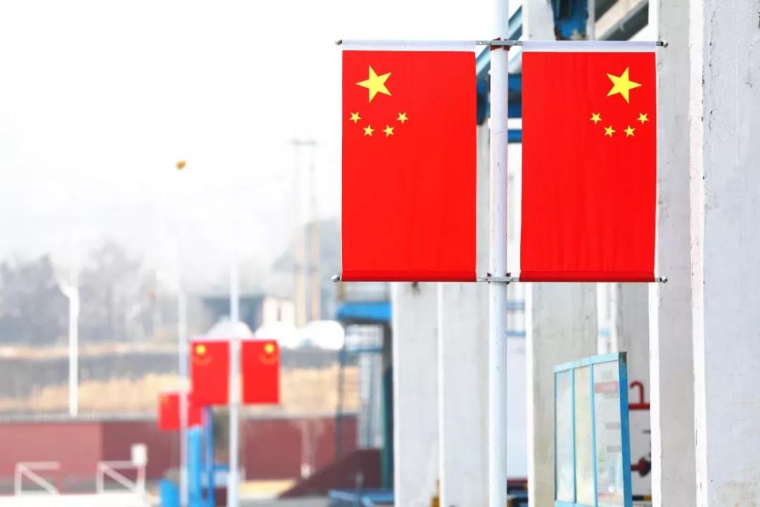大路邊管架懸掛國旗