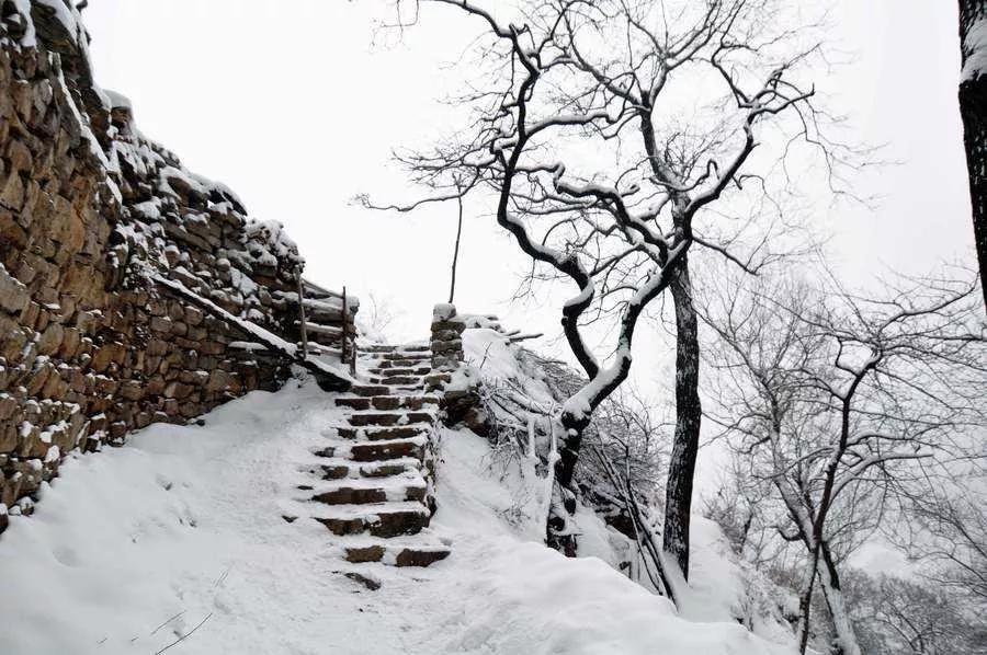 驅(qū)車從縣城出發(fā),經(jīng)山泉峪過大下車便進入一段盤山公路,一路上零星幾處人家,寥寥幾縷煙火,雖說是冬季,但山間松柏依舊發(fā)翠,草木夾雜著白雪,竟也分出黃、白、綠、灰諸多顏色來。冬季由于樹葉凋零,人的視野就格外開闊了起來,愈發(fā)覺得這山的巍峨、險峻。