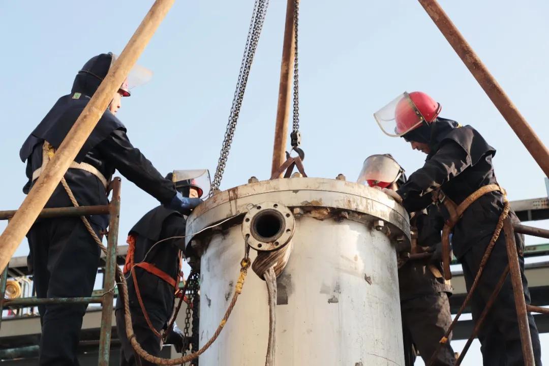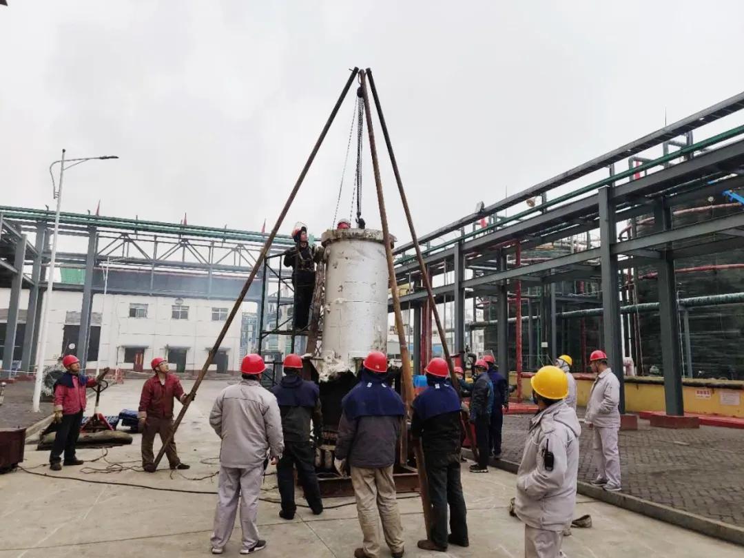 上午9時(shí),在分廠廠長(zhǎng)岳偉鵬的親自指揮下,石墨冷卻器維修工作開(kāi)始有條不紊的進(jìn)行,電儀、焊、鉗工分工明確。因?yàn)榈谝淮螜z修石墨換熱器,對(duì)內(nèi)部結(jié)構(gòu)不是特別了解,所以檢修工作相當(dāng)于是摸索中前進(jìn),對(duì)不懂的問(wèn)題及時(shí)請(qǐng)教廠家技術(shù)人員或是查找相關(guān)資料。2月29日22時(shí),經(jīng)過(guò)打壓試漏,終于完成對(duì)換熱器的拆檢維修,目前運(yùn)行正常。在整個(gè)維修過(guò)程中,分廠全體干部緊緊盯守安全、票證、質(zhì)量、進(jìn)度四個(gè)工作要求,敢于創(chuàng)新,攻堅(jiān)克難。