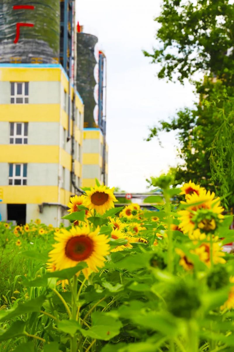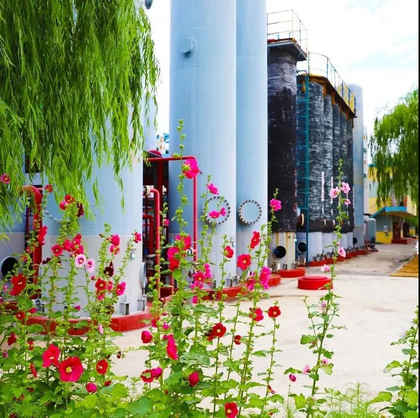 歌曲《聲聲慢》中描繪的美景“青磚伴瓦漆,白馬踏新泥,山花蕉葉暮色叢染紅巾”與盛夏中的樹脂二廠所呈現(xiàn)出來的美景有異曲同工之妙。試想,走在小雨打濕的青磚鋪就的廠區(qū)道路上,紅白相間的路沿石顯得格外亮眼,看著道路兩旁造型新穎的各式景致和精美的盆栽,廠區(qū)綠化帶內的樹木郁郁蔥蔥、各色鮮花點綴在其中,一陣清風吹過,花瓣輕沾衣襟、花香撲面而來,此時的你又怎能不慢下腳步,去用心感受一下這如詩如畫的美好畫卷呢?
