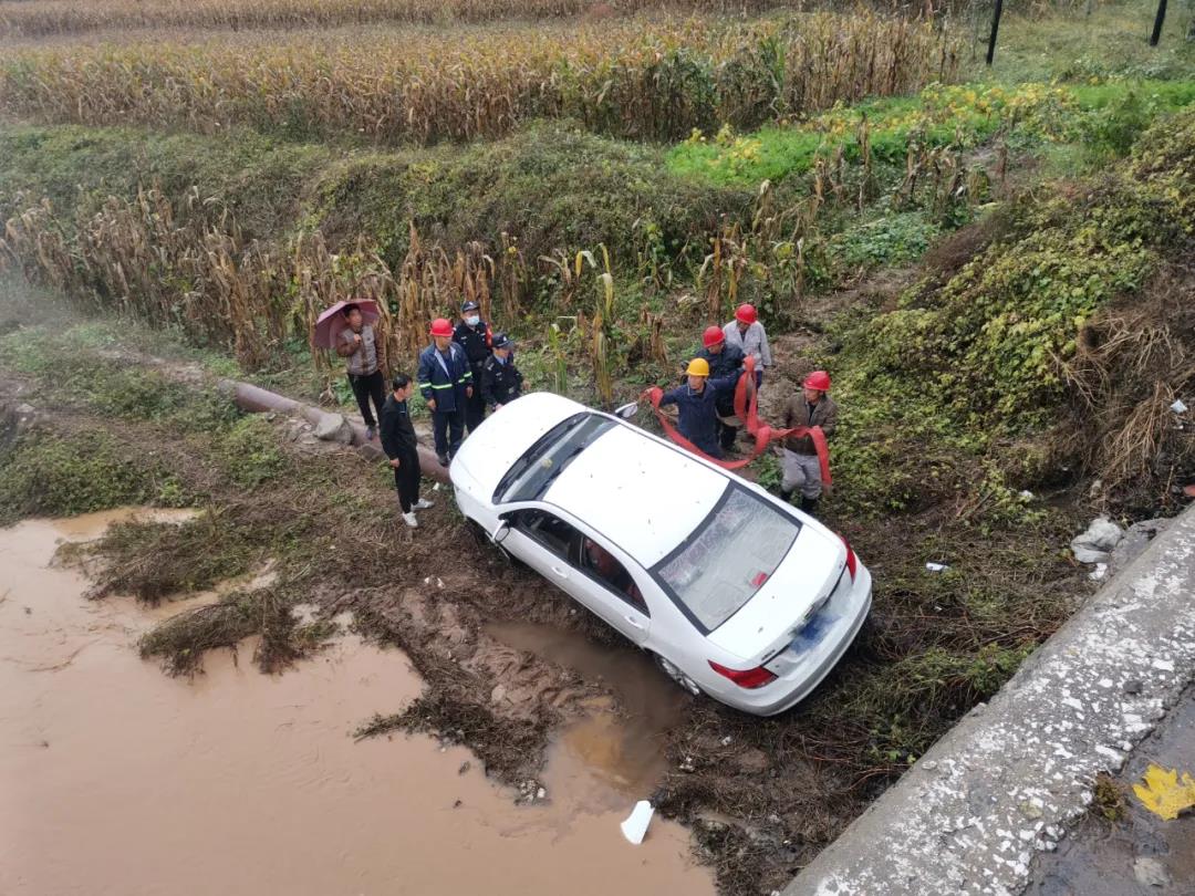 10月5日,滂沱大雨傾盆而下,趕往上大夜的員工苗師傅,在濱河路拐彎時(shí),由于雨天路滑,加上車內(nèi)視線不好,不慎將車滑落潭村橋下,幸好無人員傷亡。一大早,電化廠領(lǐng)導(dǎo)得知情況后,立即組織救援,馬上聯(lián)系吊車司機(jī),組織了檢修車間干部、四位鉗工,拿了兩根吊帶,在最短的時(shí)間內(nèi)趕往事發(fā)現(xiàn)場(chǎng)。