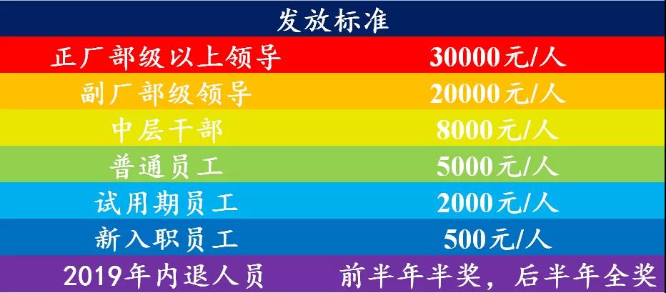 歲末將至,為激勵(lì)員工的工作熱情和積極性,在圓滿完成2019年度生產(chǎn)經(jīng)營目標(biāo)任務(wù)的同時(shí),讓員工共享企業(yè)經(jīng)營成果,結(jié)合公司的實(shí)際情況,經(jīng)公司董事會(huì)、監(jiān)事會(huì)、經(jīng)理層研究,制定2019年度年終獎(jiǎng)發(fā)放標(biāo)準(zhǔn)。