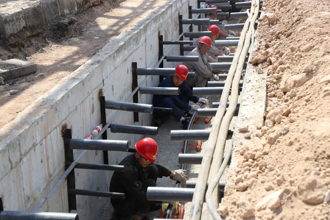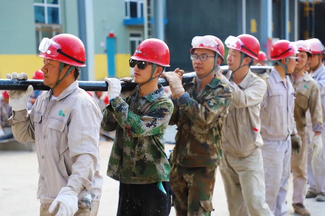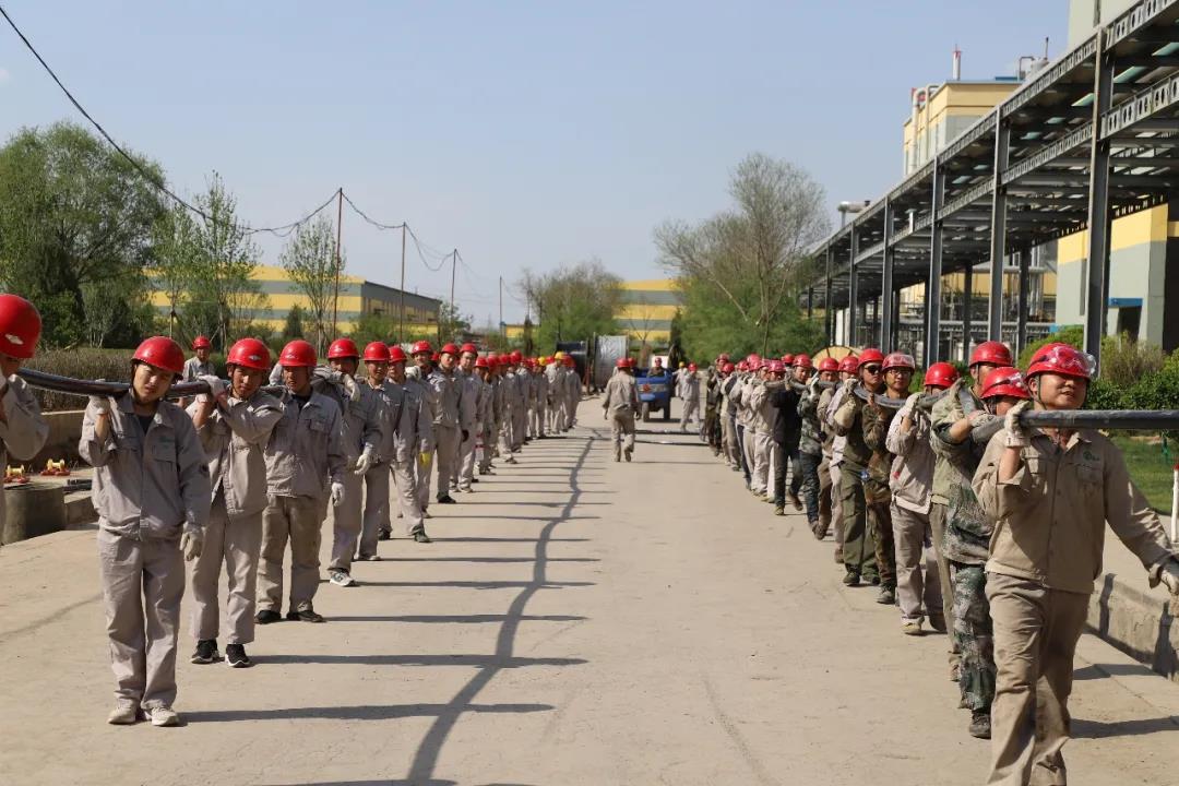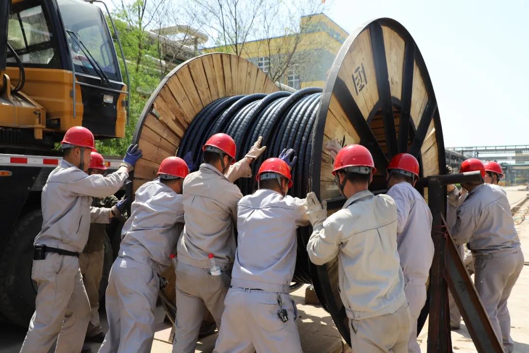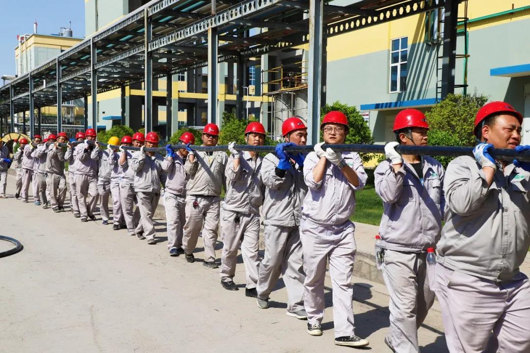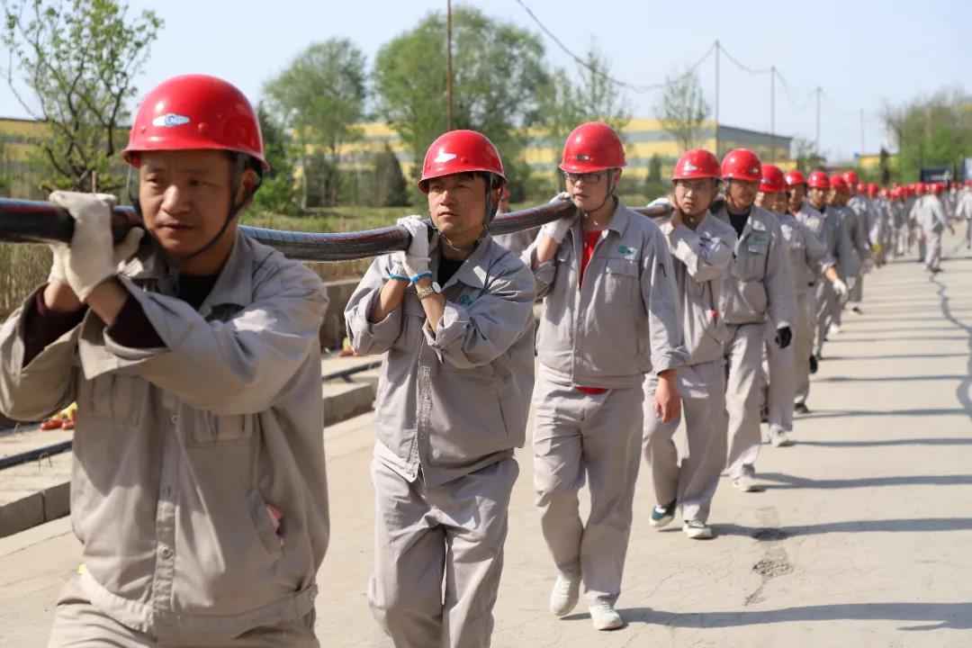 為進(jìn)一步推進(jìn)熱電聯(lián)產(chǎn)項(xiàng)目建設(shè),公司在“五一”假期期間組織各分廠員工進(jìn)行拉電纜義務(wù)勞動(dòng)。本次電纜敷設(shè)從熱電聯(lián)產(chǎn)項(xiàng)目配電室至1#110KV變電站新配電室,配置1100米電纜12根和730米電纜6根,共計(jì)17580米,從6個(gè)分廠抽調(diào)員工3000余人次,僅用5天時(shí)間完成全部任務(wù),比原計(jì)劃提前2天。