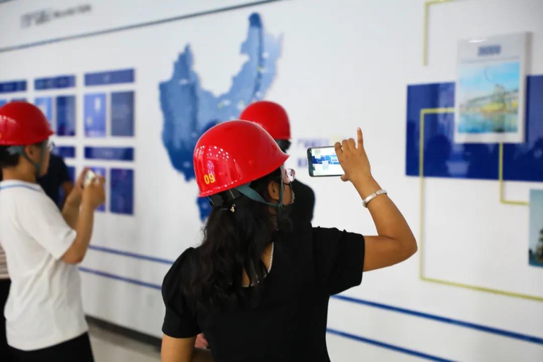 在電解車間、包裝車間、污水處理工段、集控中心......參觀人員面對充滿現(xiàn)代化、科技感的先進儀器設(shè)備,好奇不已,工作人員面帶微笑耐心解答大家的提問,言語中透露著濃濃的自豪感。