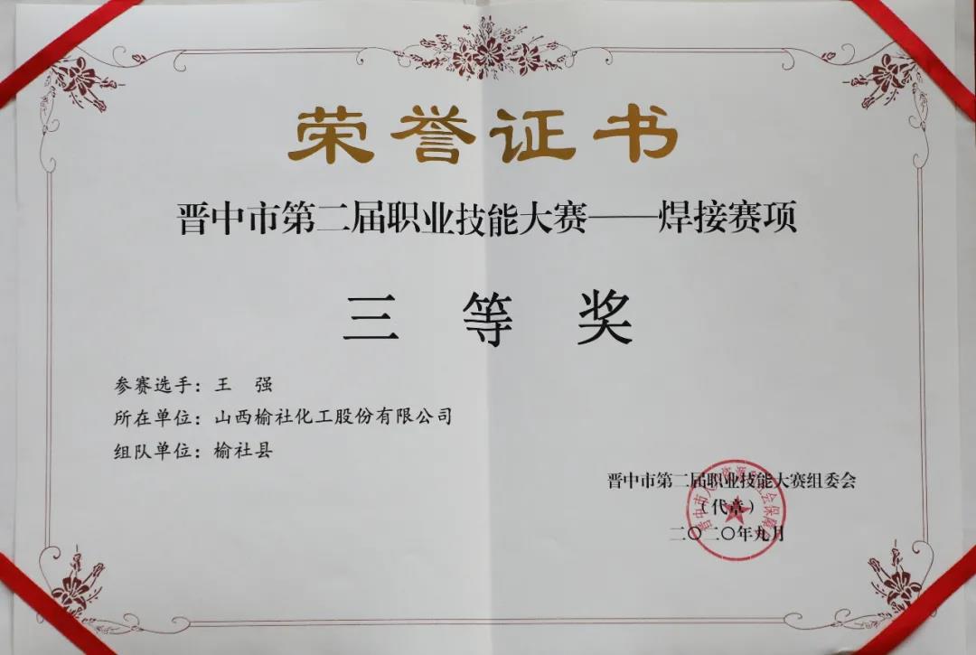 弘揚(yáng)工匠精神,培育技能人才,在人才興企的時(shí)代浪潮中,榆化公司不斷加強(qiáng)技能培訓(xùn),專注于提升員工職業(yè)技能,培養(yǎng)出一批優(yōu)-秀的專業(yè)技能人才。在晉中市第二屆職業(yè)技能大賽中,公司員工穆成材、王強(qiáng)分別獲得焊接賽項(xiàng)二等獎(jiǎng)和三等獎(jiǎng)。