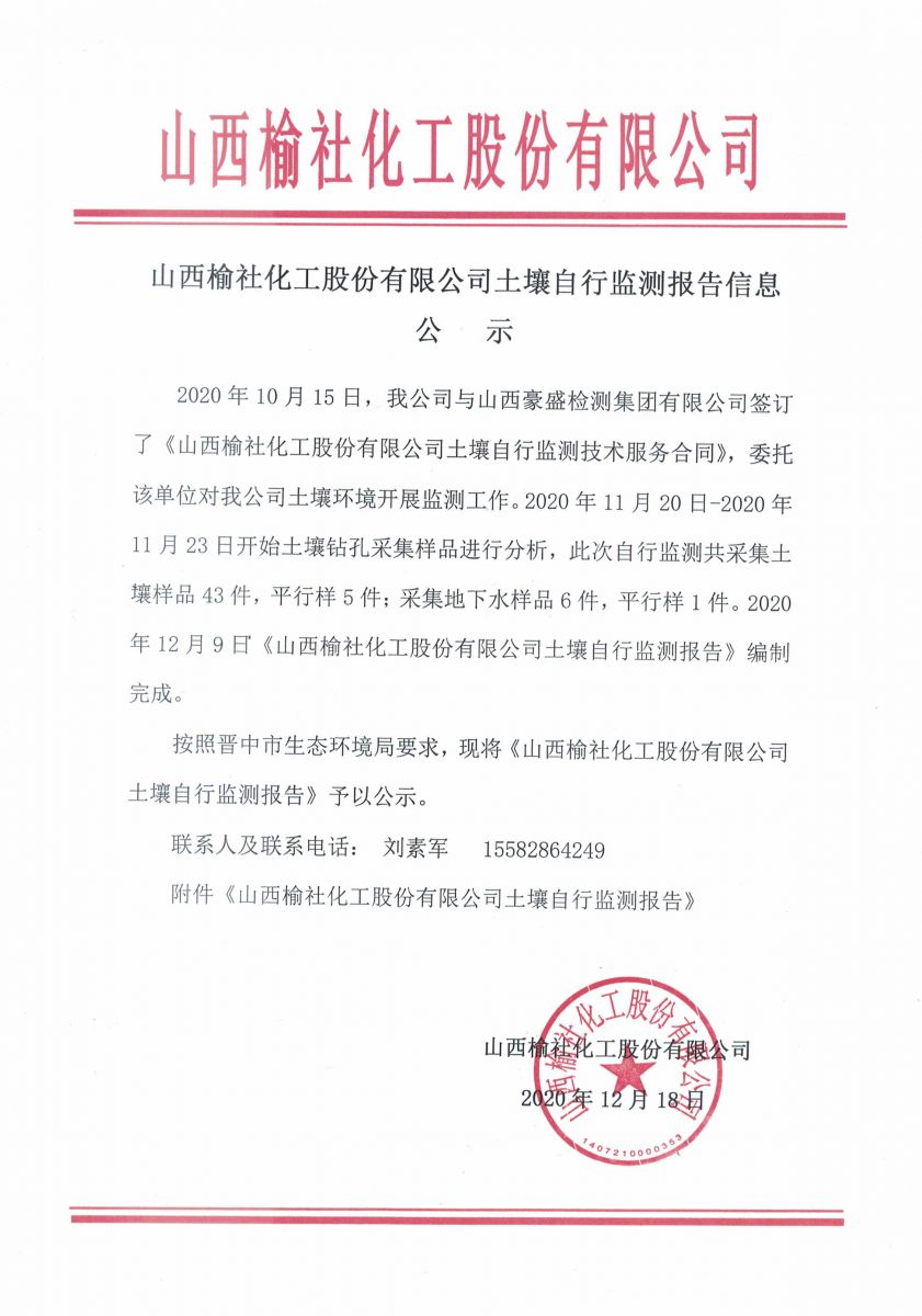 山西榆社化工股份有限公司土壤自行監(jiān)測報告信息公示