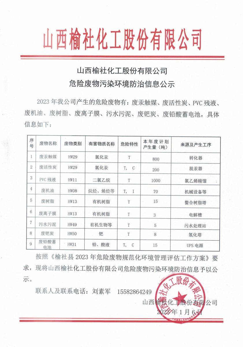 危險廢物污染環(huán)境防治信息公示