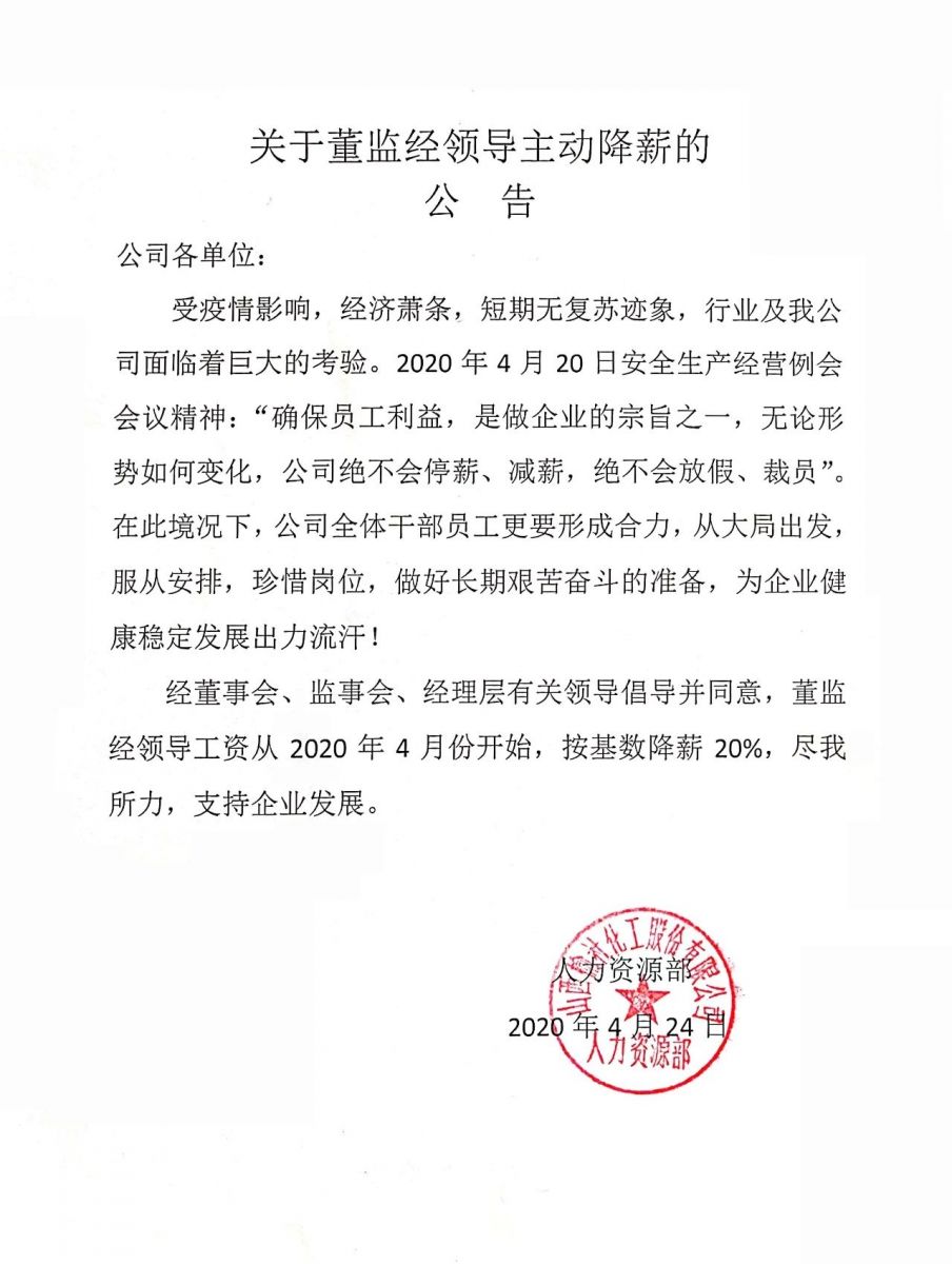 關(guān)于董監(jiān)經(jīng)領(lǐng)導(dǎo)主動(dòng)降薪的公告