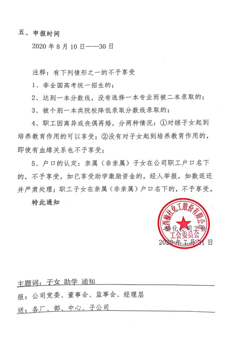 關(guān)于開展2020年度職工子女助學(xué)激勵的通知