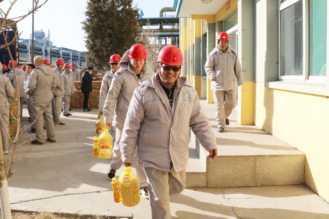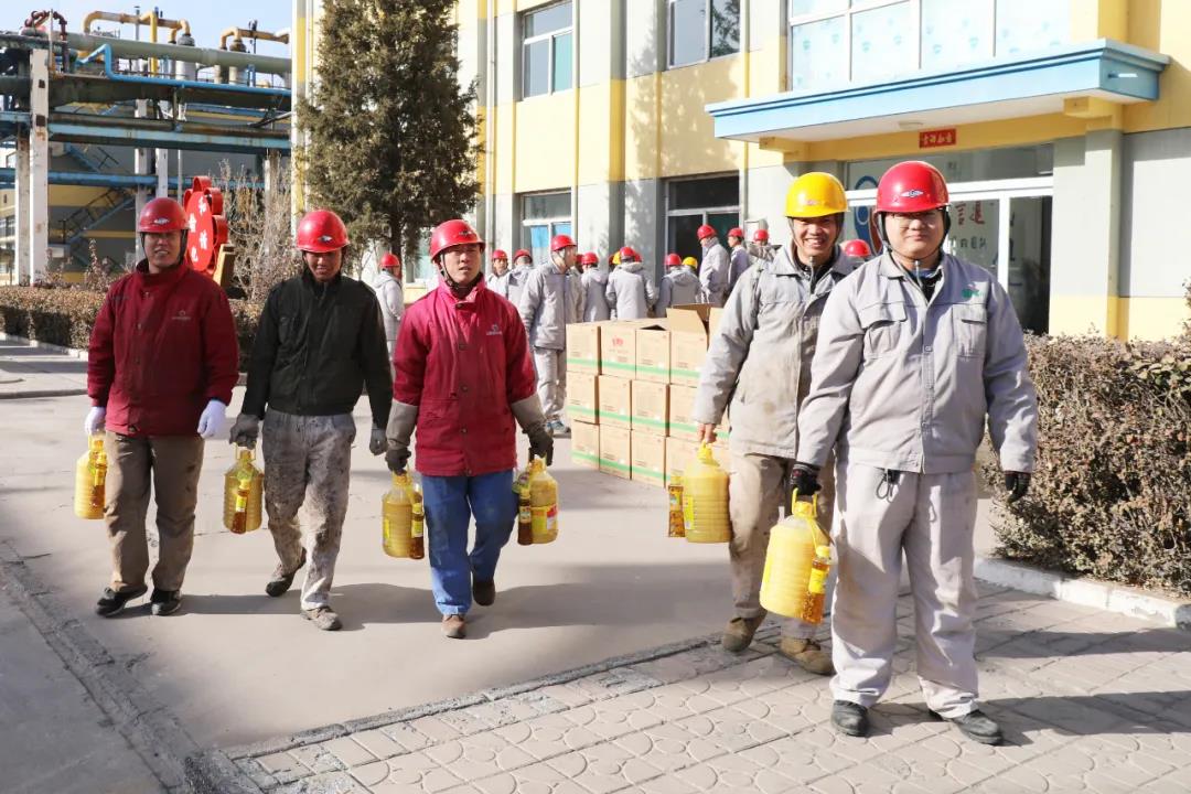 1月11日,公司繼發(fā)放河套面粉、五常大米、壺瓶大棗等過(guò)節(jié)福利物品后,又為員工發(fā)放了魯花壓榨花生油。