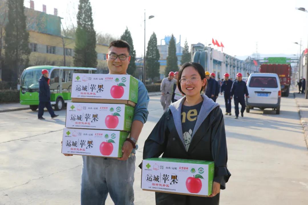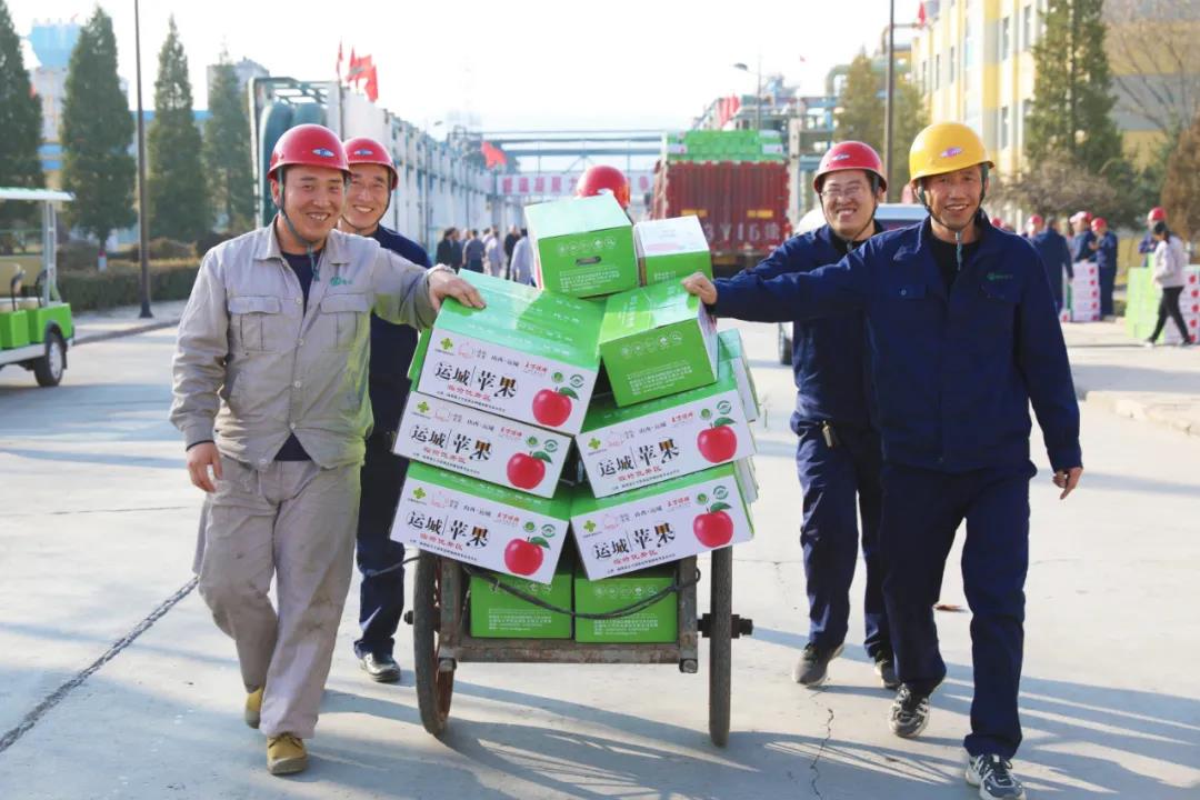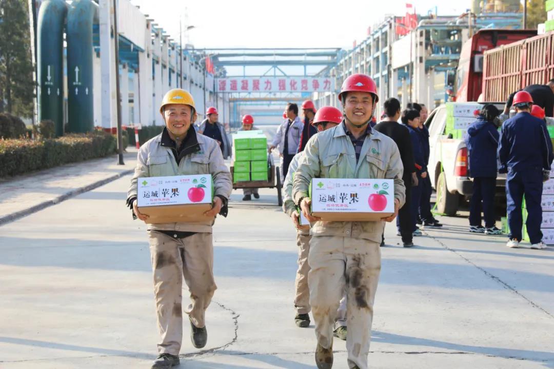 車上整齊碼放的一箱箱蘋果在各單位有序安排和齊心協(xié)力傳遞中卸下。現(xiàn)場人員配合默契,一箱箱紅彤彤的蘋果陸續(xù)發(fā)放到員工手中,歡聲笑語的打趣聲、手捧肩扛的場景熱鬧非凡。