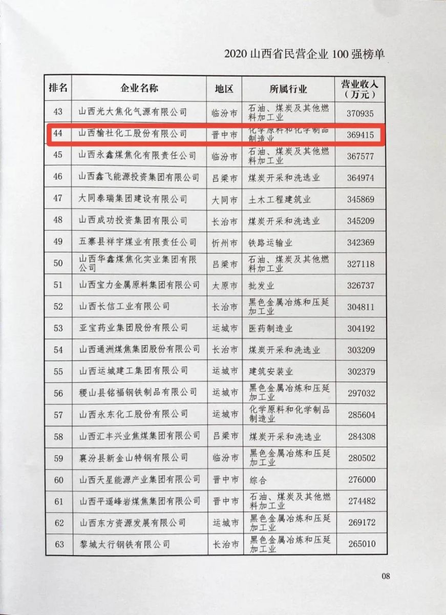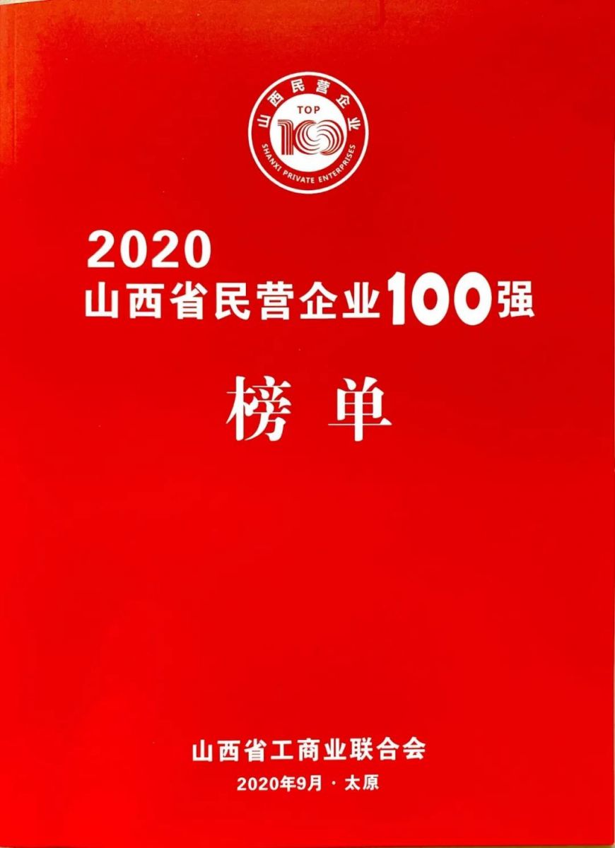 9月16日,省城太原傳來喜訊,由山西省工商聯(lián)主辦,中國民生銀行太原分行承辦的“2020山西省民營企業(yè)100強”發(fā)布會公布的榜單中,我公司榮登山西省民營企業(yè)百強榜,位列第44位。