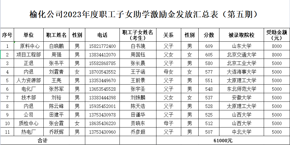 自7月20日助學(xué)激勵活動通知下發(fā)以來,經(jīng)過各單位、各基層廣泛宣傳分階段性有序推進,通過前期摸底、申報、審核,本年度符合受助條件的共有11名高考成績優(yōu)異職工子女,共計發(fā)放助學(xué)激勵金61000元。