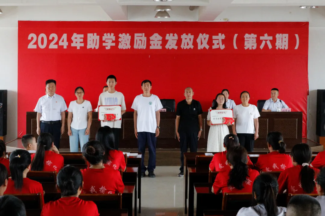 公司領(lǐng)導(dǎo)頒發(fā)助學(xué)激勵(lì)金。