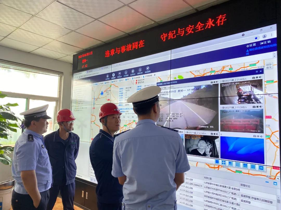 賀永平一行深入運營中心通過對G7平臺的調(diào)取,對在途車輛的行車規(guī)范、行駛路線、行車時長等進行了抽查,并與監(jiān)控人員詳細交流,對車輛的運營情況進行了詢問、了解,隨后對院內(nèi)停放車輛的安全標識標牌、反光條等進行了檢查。