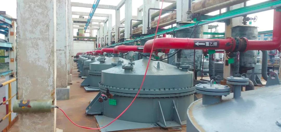 轉(zhuǎn)化器的正常運行是氯乙烯工段穩(wěn)定的關(guān)鍵,除了要對轉(zhuǎn)化器進(jìn)行外部保養(yǎng)外,還要嚴(yán)格控制工藝指標(biāo),保證每臺轉(zhuǎn)化器的正常運行。要求每個操作工精心調(diào)整配比,分析工按時做好分析,并且及時準(zhǔn)確的將數(shù)據(jù)報告微機(jī)工,切不可弄虛作假。儀表工加大力度將轉(zhuǎn)化器上有壞點的測溫桿換掉,必須保證微機(jī)上每臺轉(zhuǎn)化器的溫度顯示正?!,F(xiàn)場巡檢工按時對轉(zhuǎn)化器進(jìn)行排酸檢查,杜絕一切“跑、冒、滴、漏”,有不正常必須及時甩下處理。只有微機(jī)工、巡檢工、儀表工、分析工三者緊密聯(lián)系,齊心合作,才能保證轉(zhuǎn)化器的正常運行,才是對轉(zhuǎn)化器最 好的維護(hù)保養(yǎng)。