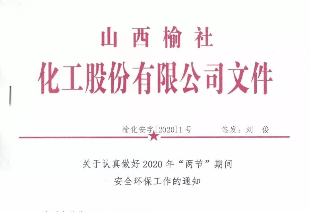 2020年元旦、春節(jié)即將來臨,為貫徹落實(shí)全國、全省安全生產(chǎn)工作會議精神,切實(shí)加強(qiáng)今冬明春安全生產(chǎn)工作,確保“兩節(jié)”期間生產(chǎn)安全及職工生活穩(wěn)定,公司特下發(fā)“兩節(jié)”期間認(rèn)真做好安全環(huán)保工作的通知。