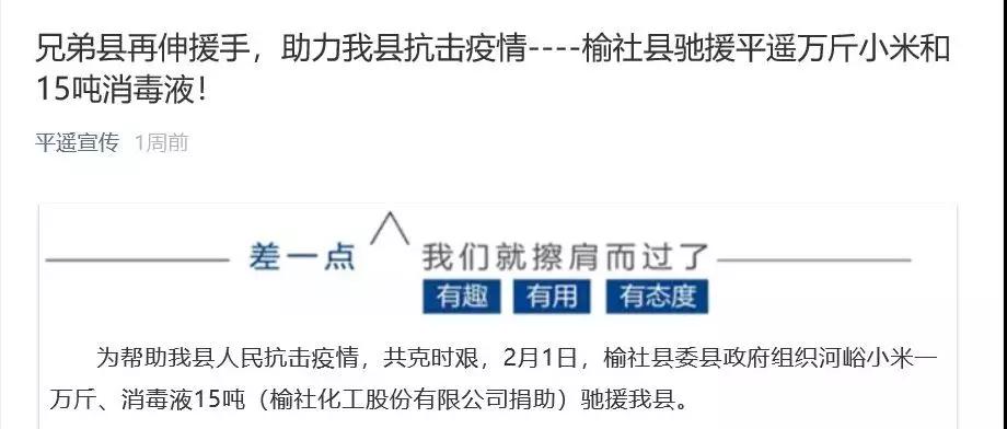 平遙縣、太原機務段、晉中市容環(huán)衛(wèi)、和順縣、東陽鎮(zhèn)等通過新媒體向我公司表示了感謝。