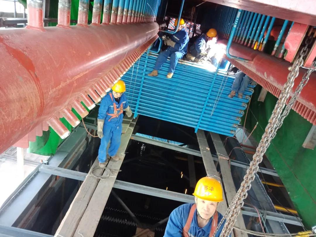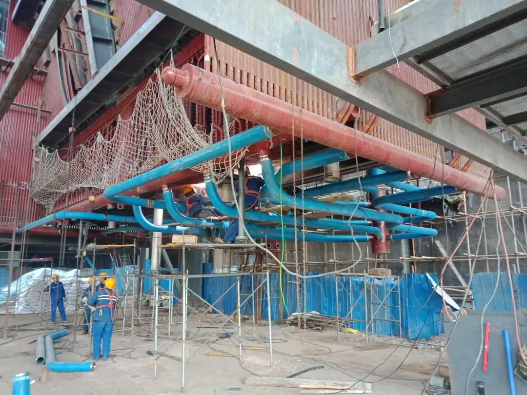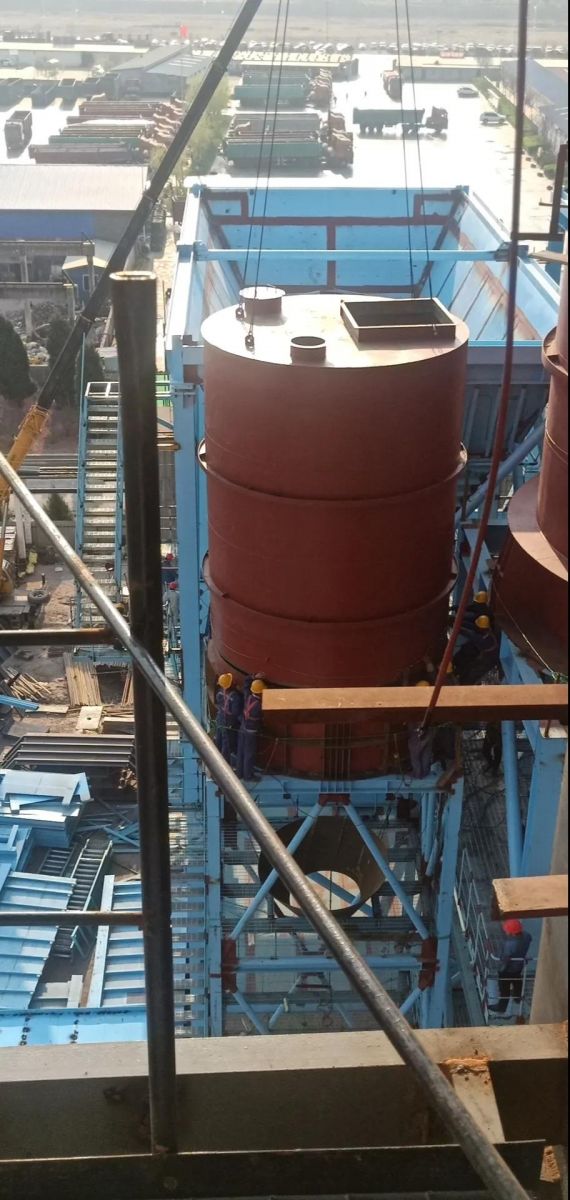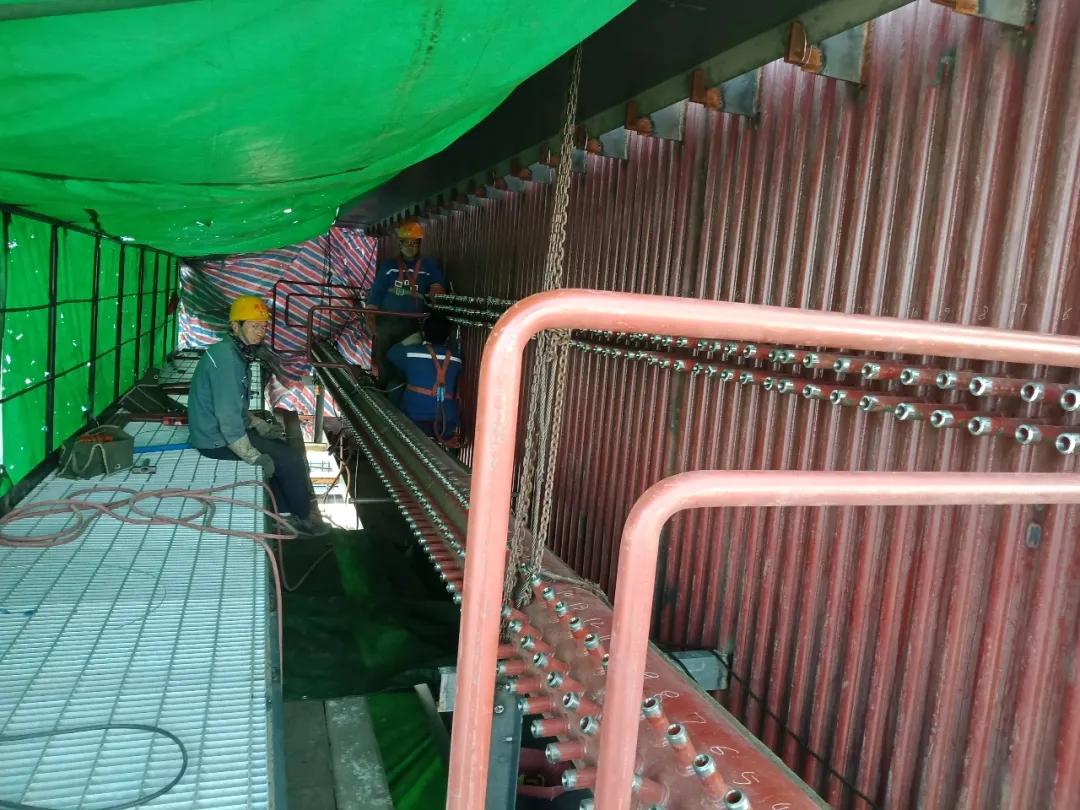 08. 安裝下降管與水冷壁下聯(lián)箱連接管。