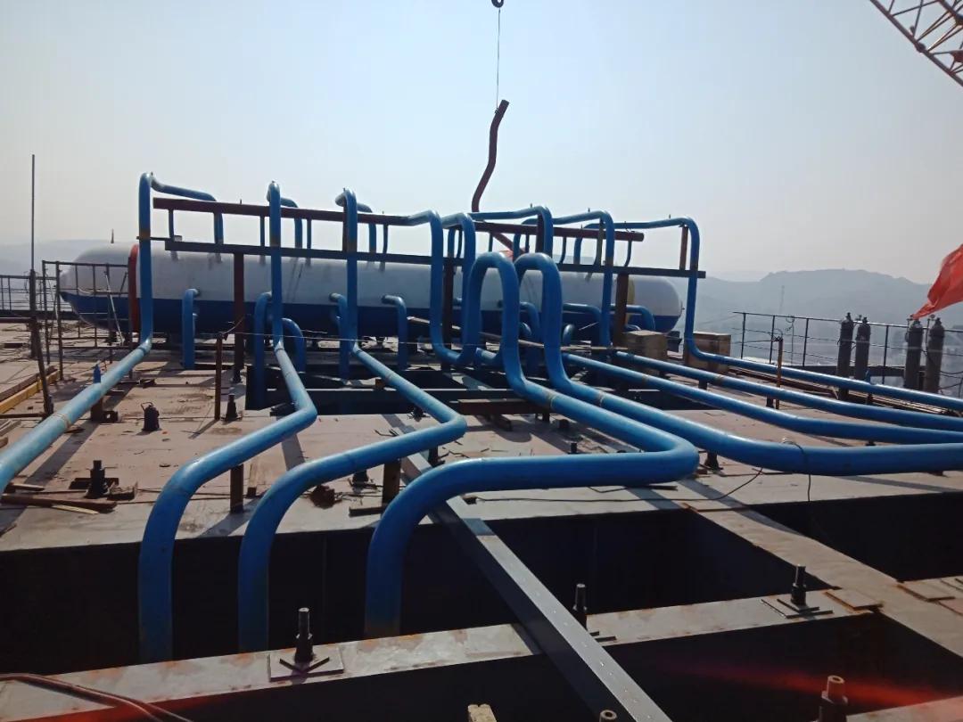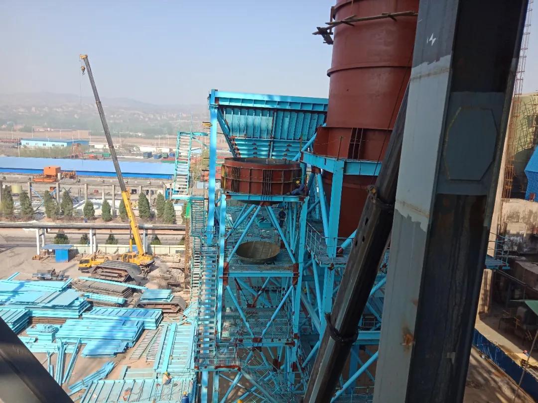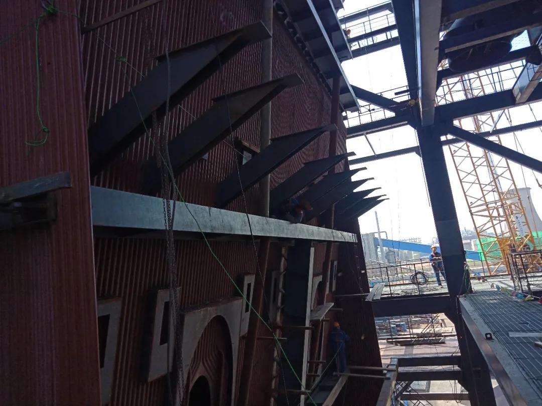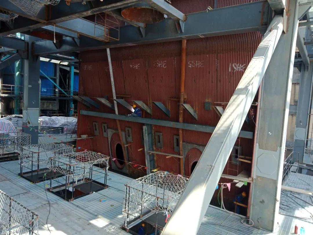 08. 安裝下降管與水冷壁下聯(lián)箱連接管。