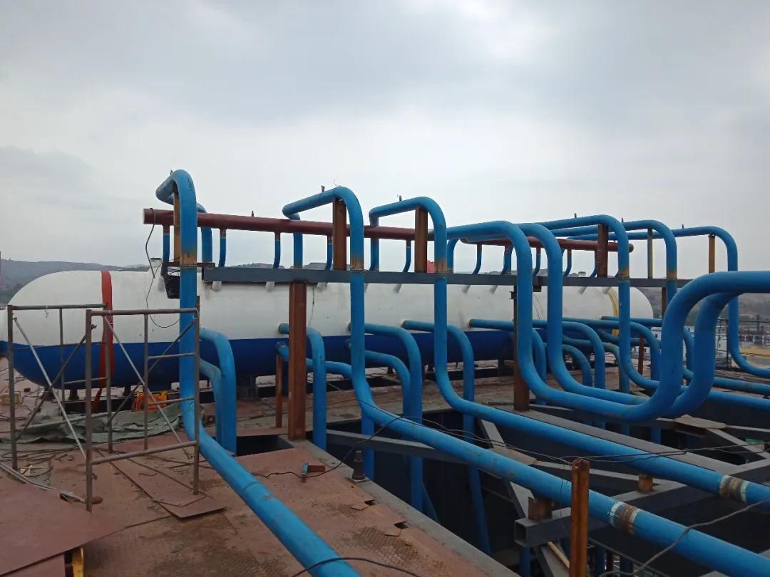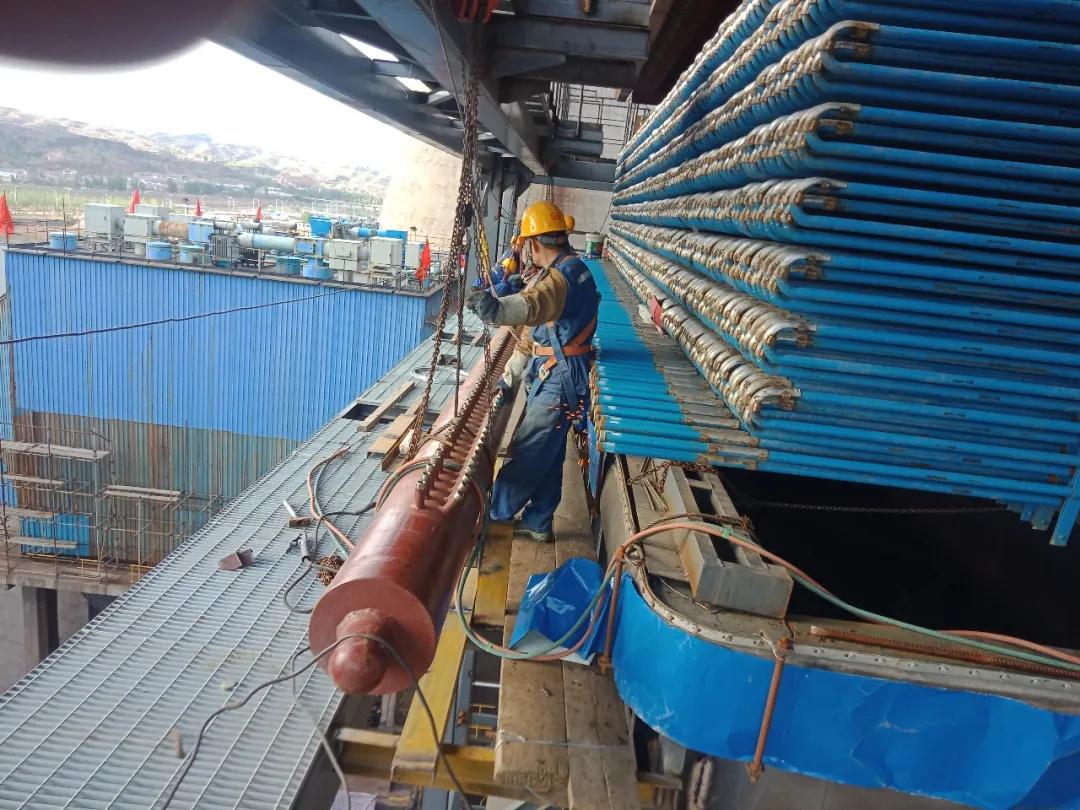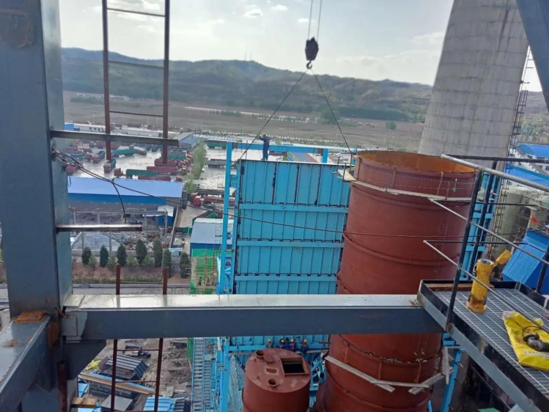 上下級省煤器全部就位,準(zhǔn)備安裝上級省煤進口集箱