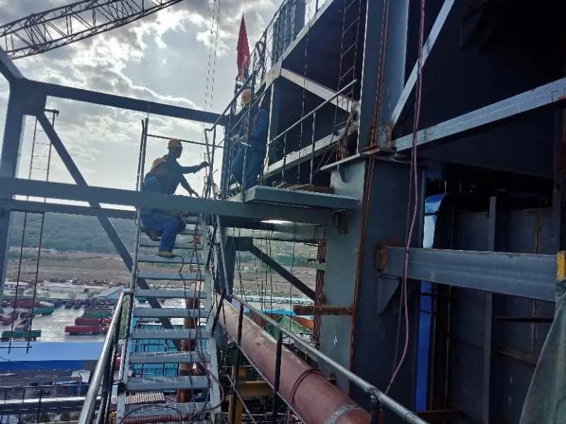 下降管與水冷壁、水冷屏連接管全部組裝完成,正在焊接