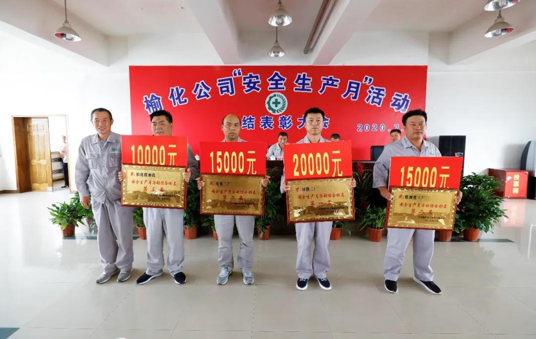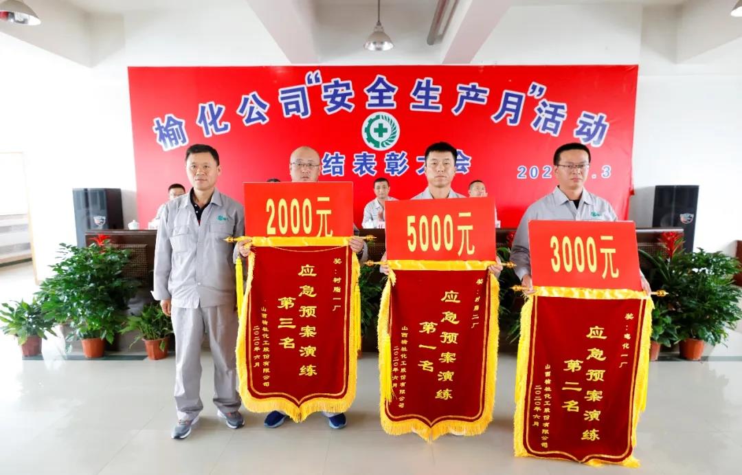 第二項是頒獎儀式,對“安全生產(chǎn)月”活動中涌現(xiàn)出的先進個人和先進集體進行表彰獎勵。其中,應(yīng)急預(yù)案演練集體獎前三名依次是樹脂二廠、電化一廠、樹脂一廠,各頒發(fā)錦旗一面,分別獎勵獎金5000元、3000元、2000元;綜合排名集體獎為樹脂二廠第一名、電化二廠和精細(xì)化工廠并列第二名,第三名為子公司榆化精細(xì)化,頒發(fā)獎牌一塊,分別獎勵獎金20000元、15000元、10000元。