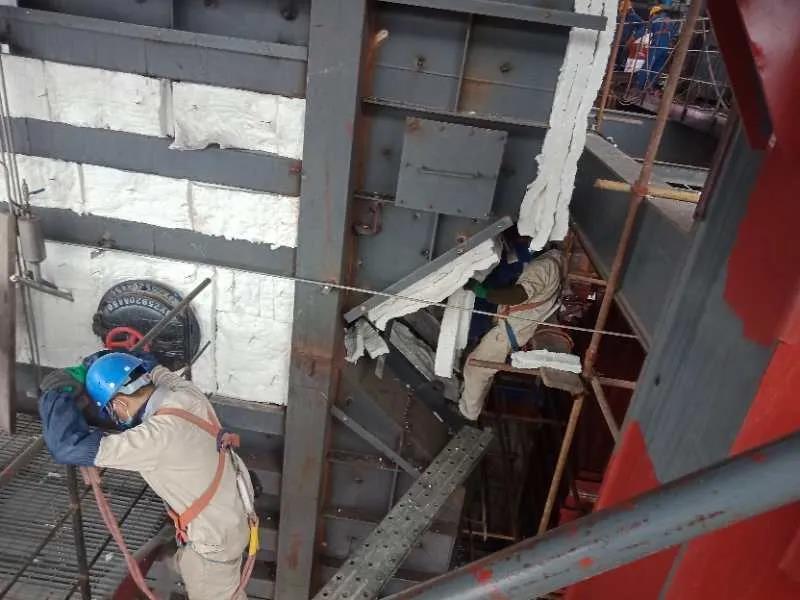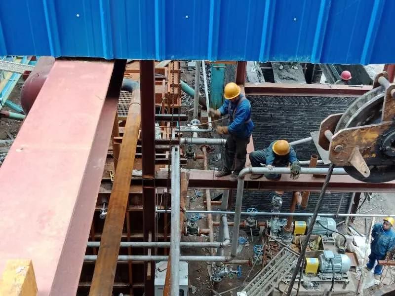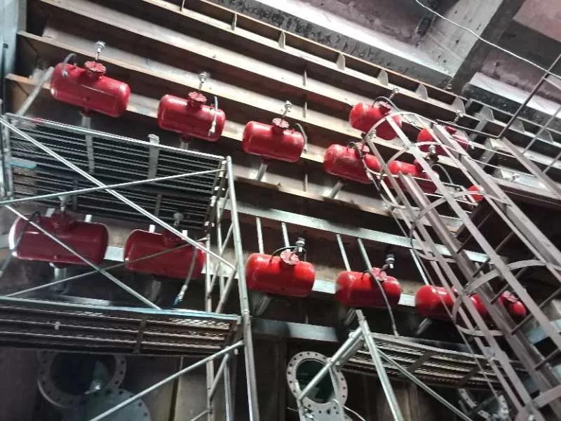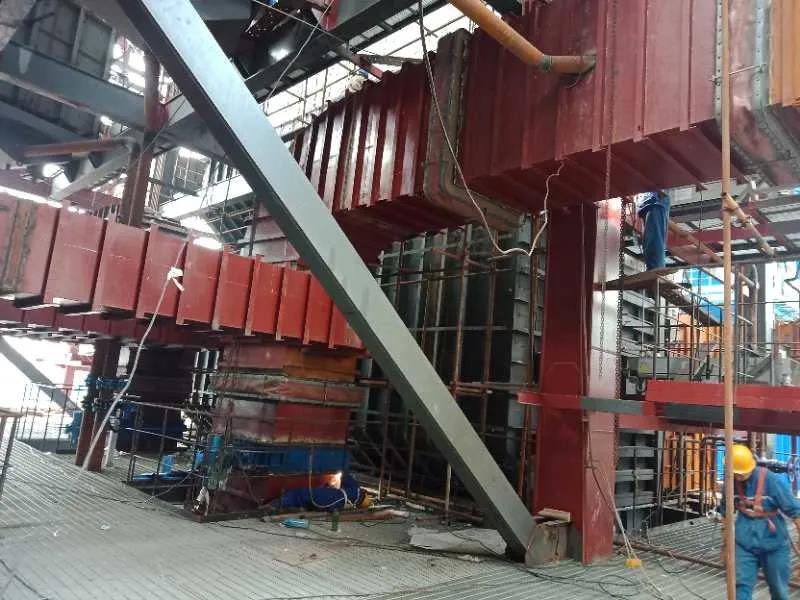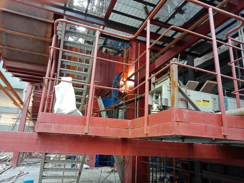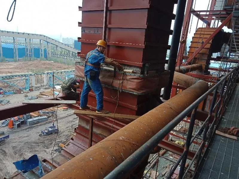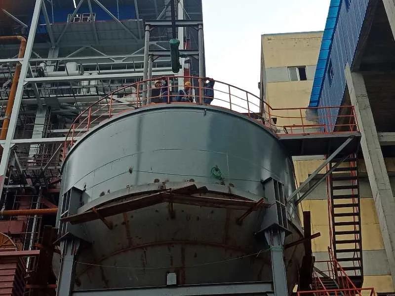 06 給煤機(jī)就位,煤倉(cāng)風(fēng)炮安裝完成