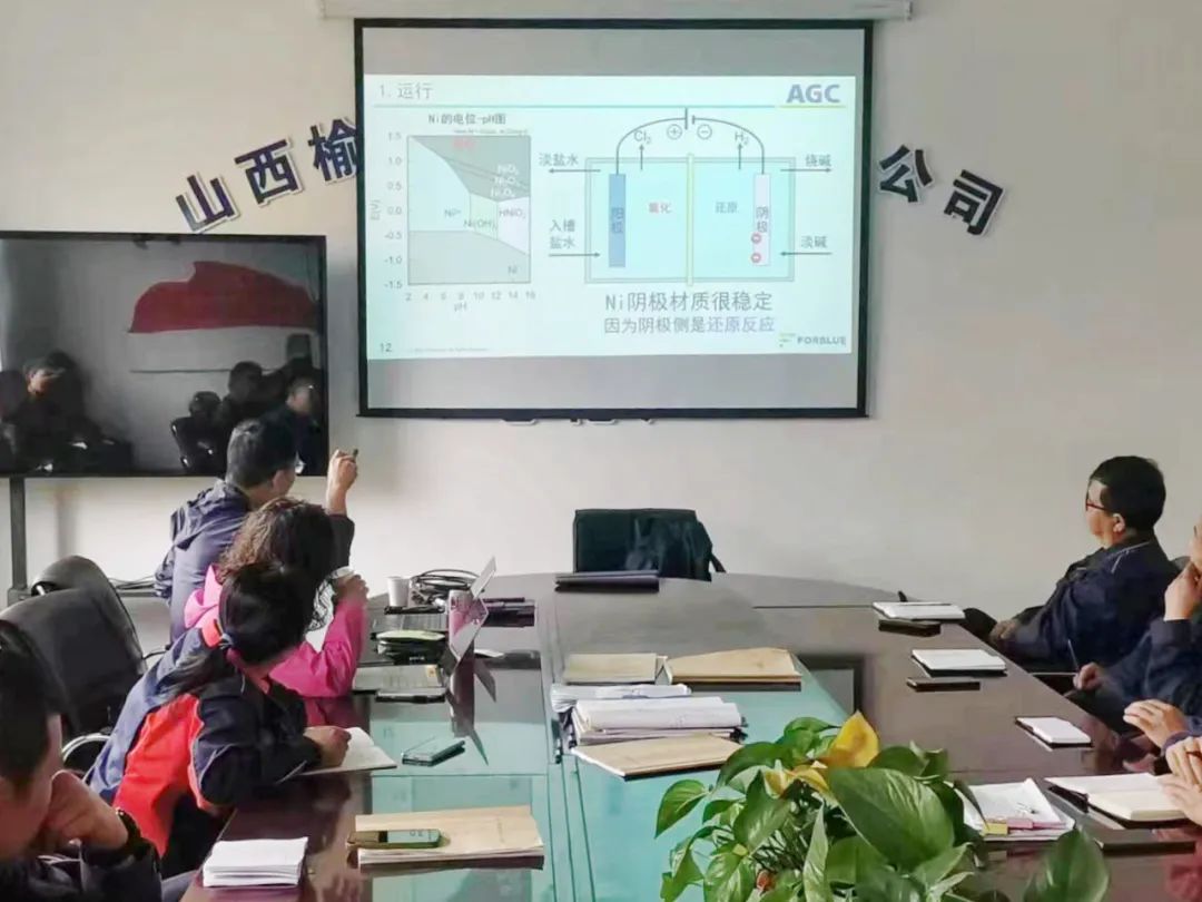 5月25日,電化廠(chǎng)邀請(qǐng)離子膜廠(chǎng)家技術(shù)員對(duì)員工進(jìn)行專(zhuān)業(yè)培訓(xùn),重點(diǎn)針對(duì)有極距與零極距電解槽的構(gòu)造、北化機(jī)電解槽離子膜全程換膜操作及注意事項(xiàng)等方面進(jìn)行詳細(xì)講解。培訓(xùn)結(jié)束后員工主動(dòng)與廠(chǎng)家技術(shù)員交流,詢(xún)問(wèn)知識(shí)難點(diǎn)以及日常工作中遇到的困難和問(wèn)題。通過(guò)此次專(zhuān)業(yè)技術(shù)培訓(xùn),提升了員工的日常操作技能,有效延長(zhǎng)離子膜的使用壽命,提高電流效率,降低生產(chǎn)成本,為春檢期間電解槽更換離子膜提供強(qiáng)有力的保障。